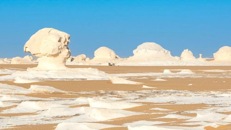 Lejos de las pirámides y los cruceros por el Nilo, el Desierto Blanco parece una escultura natural salida de otro planeta. Sus formaciones de tiza blanca, moldeadas por el viento del Sahara, crean un paisaje surreal que cambia con la luz del día.