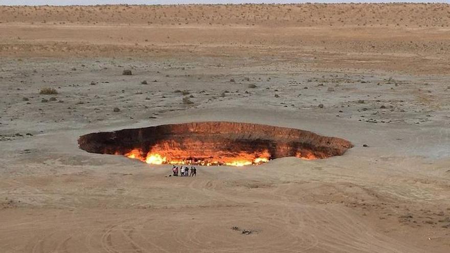 Este cráter de gas natural ardiendo continuamente desde la década de 1970 se encuentra en el desierto de Karakum. Originalmente creado por accidente durante una perforación, el sitio fue incendiado para controlar la emisión de gas metano, pero las llamas nunca se extinguieron. Atrae a turistas por su aspecto infernal y su persistente misterio científico sobre la durabilidad del fuego.