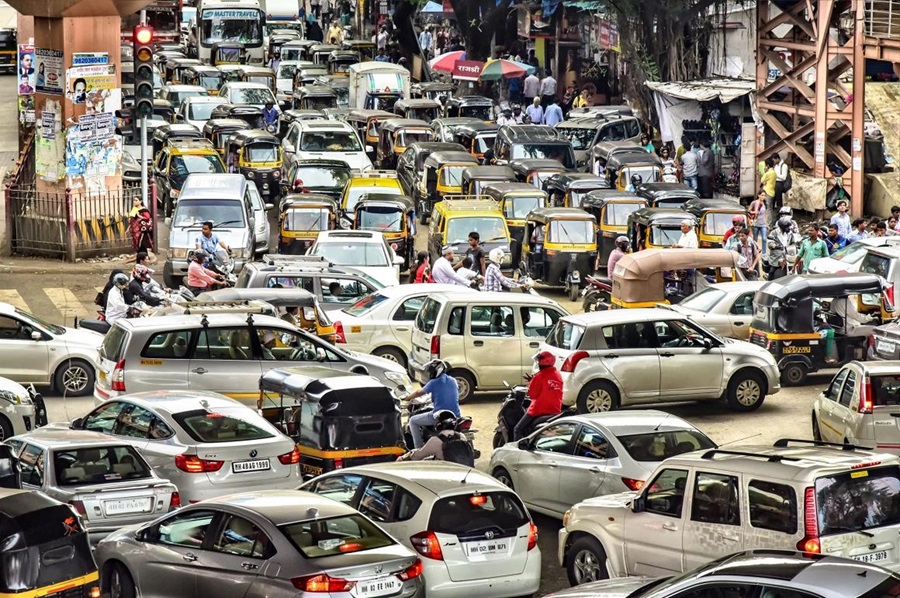 Bombay (Mumbai) es otro centro económico indio donde el tráfico puede ser abrumador. La combinación del crecimiento poblacional y la infraestructura insuficiente resulta en embotellamientos severos durante todo el día.