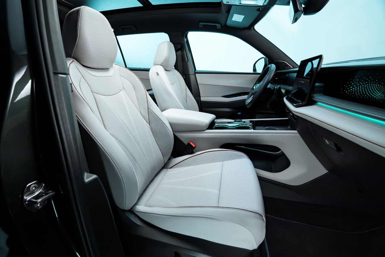 En el interior, el habitáculo se ha rediseñado por completo y se ha elevado con un diseño más moderno y materiales de alta gama. Un llamativo bucle unifica el puesto de conducción con una imponente declaración arquitectónica.